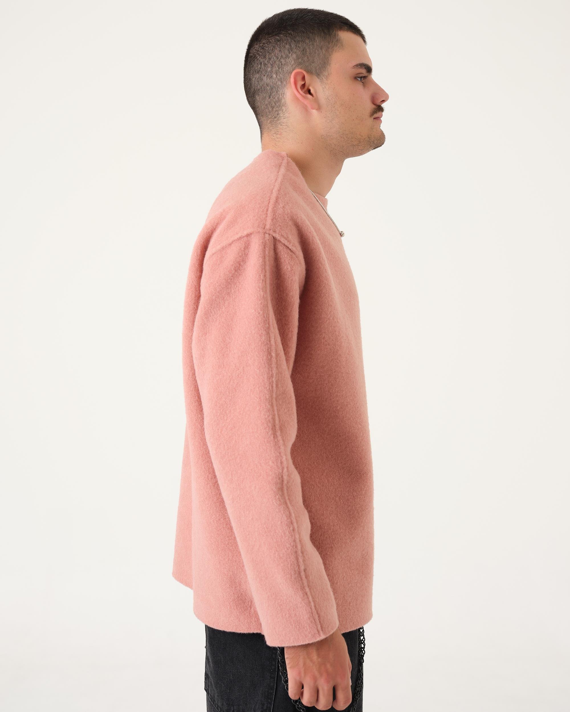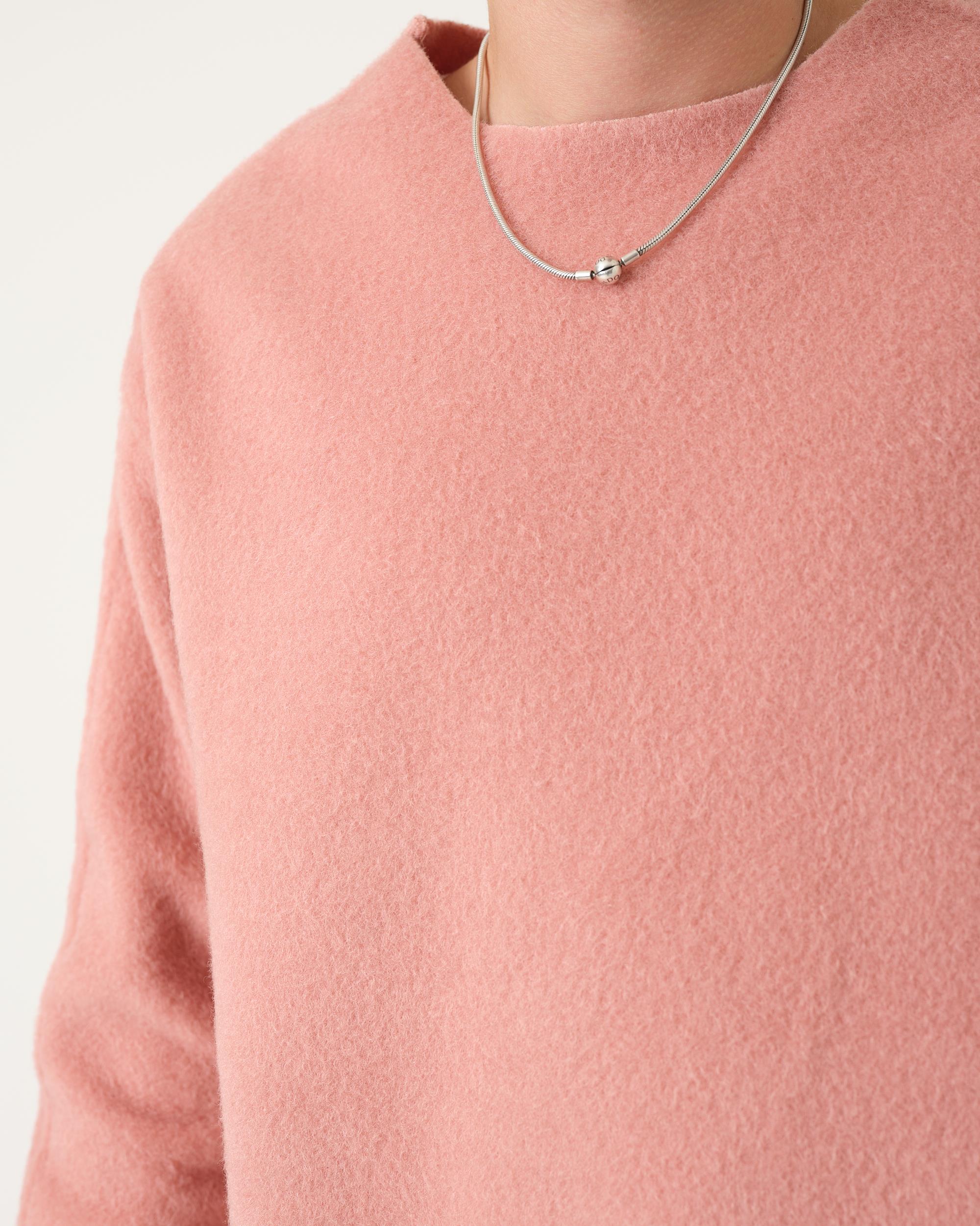 Haihola'nın yalın ve modern tasarım anlayışını yansıtan bu yakasız pembe kazak, şıklığı ve konforu bir arada sunuyor. Minimalist tasarımı ve yumuşak dokusuyla hem günlük kullanımda hem de özel anlarda tarzınıza sofistike bir dokunuş katar.